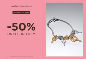 Získejte –50 % na druhý levnější produkt při nákupu v prodejnách Pandora.