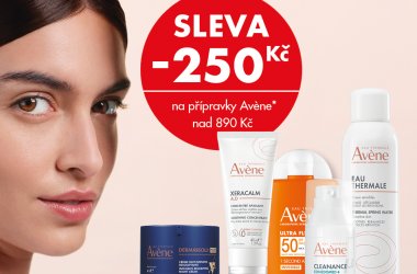 Máme pro vás skvělou slevu 250 Kč na všechny přípravky od značky Avène při nákupu nad 890 Kč. Tato akce platí do 30. 4. 2026.